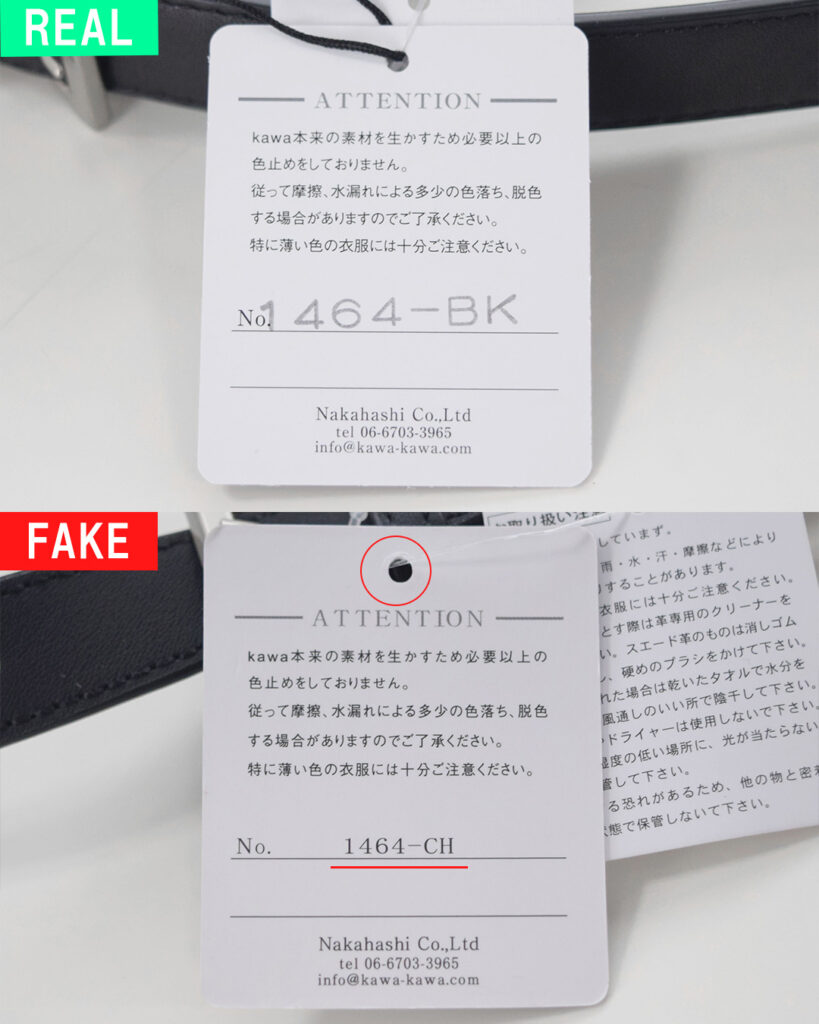 ・ブランドタグ(“MADE IN JAPAN” がない、フォントが違う など)
